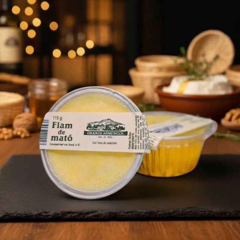 El Flam de Mató Granja Armengol 115g és un postre làctic tradicional elaborat amb mató artesà, un formatge fresc suau i lleuger. Amb una textura cremosa i un toc dolç proporcionat pel caramel, aquest flam és una opció deliciosa i natural per gaudir d’un postre equilibrat. Elaborat amb ingredients de proximitat i sense conservants artificials, és perfecte per als amants dels sabors autèntics.