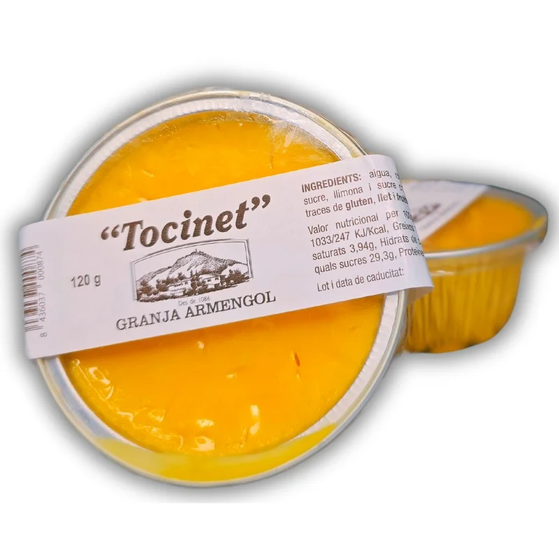 El Tocinet Granja Armengol 120g és un postre tradicional català amb una textura suau i un intens sabor dolç. Elaborat amb rovell d’ou fresc (15,7%), sucre, llimona i sucre cremat, segueix la recepta clàssica per aconseguir un resultat deliciós i artesanal. Ideal per als amants dels postres autèntics, aquest tocinet és perfecte per gaudir en qualsevol ocasió.
