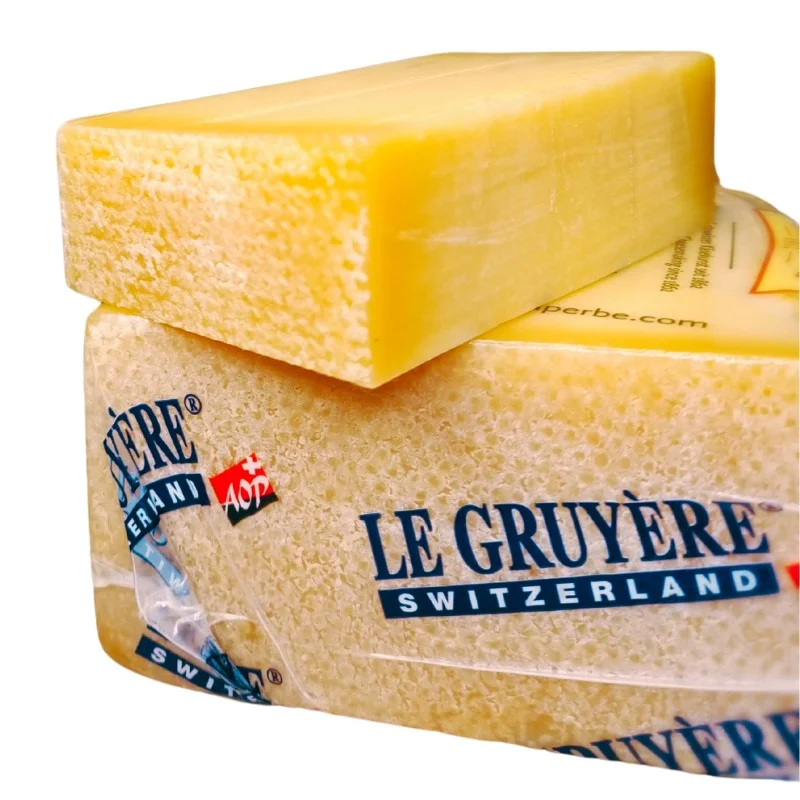El Formatge Gruyère Suís és un dels grans formatges suïssos, elaborat segons la tradició en els cantons de Friburg, Vaud, Neuchâtel, Jura i Berna. Aquest formatge de pasta dura i color ivori-amarillós, destaca pel seu sabor intens, suau i lleugerament afruitat, evolucionant cap a notes més potents i salines amb la maduració. Elaborat amb llet fresca de vaques alimentades amb pastures naturals, sense additius ni conservants, seguint les normes estrictes de la seva denominació d’origen. La seva textura és compacta, amb o sense petits ulls rodons d’uns 6 mm de diàmetre.