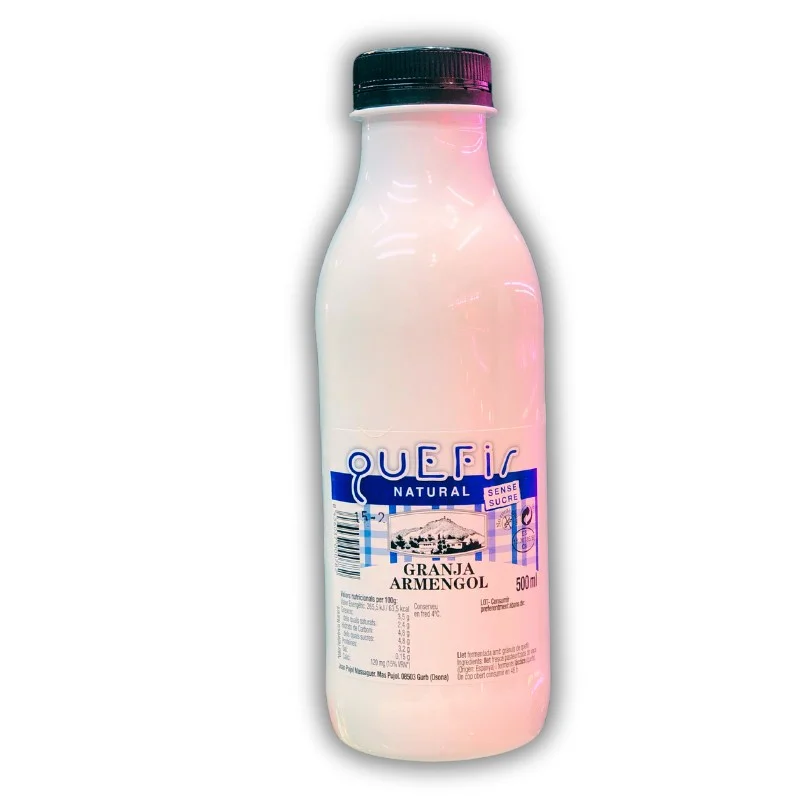 Armengol Quefir Natural Sense Sucre 500ml. Beguda làctica fermentada, rica en probiòtics, elaborada amb llet fresca pasteuritzada.
