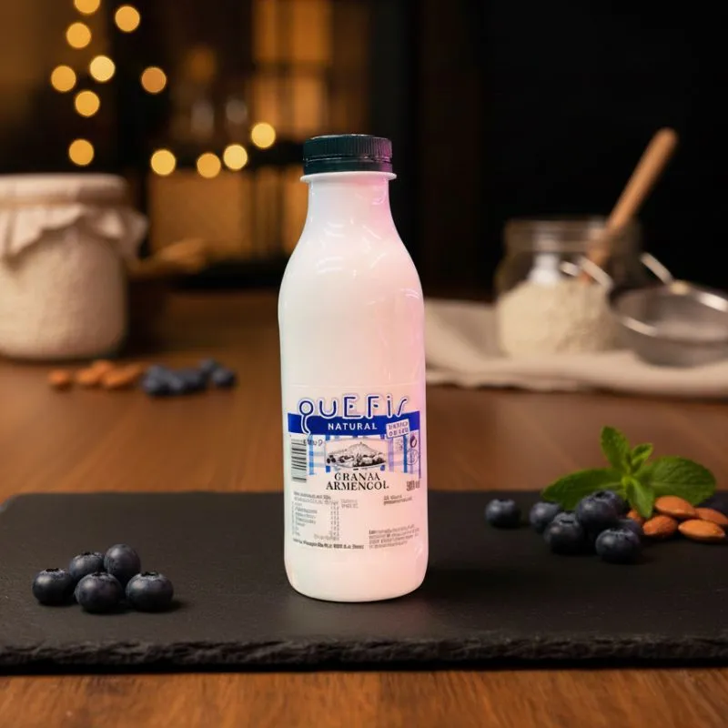 El Armengol Quefir Natural Sense Sucre 500ml és una beguda làctica fermentada de manera tradicional amb grànuls de quefir, que aporten una textura suau i cremosa. És una excel·lent font de probiòtics naturals, ajudant a l’equilibri de la flora intestinal i millorant la digestió. Elaborat amb llet fresca pasteuritzada de vaca d’origen local, aquest quefir és ideal per consumir sol o combinat amb fruites i cereals.